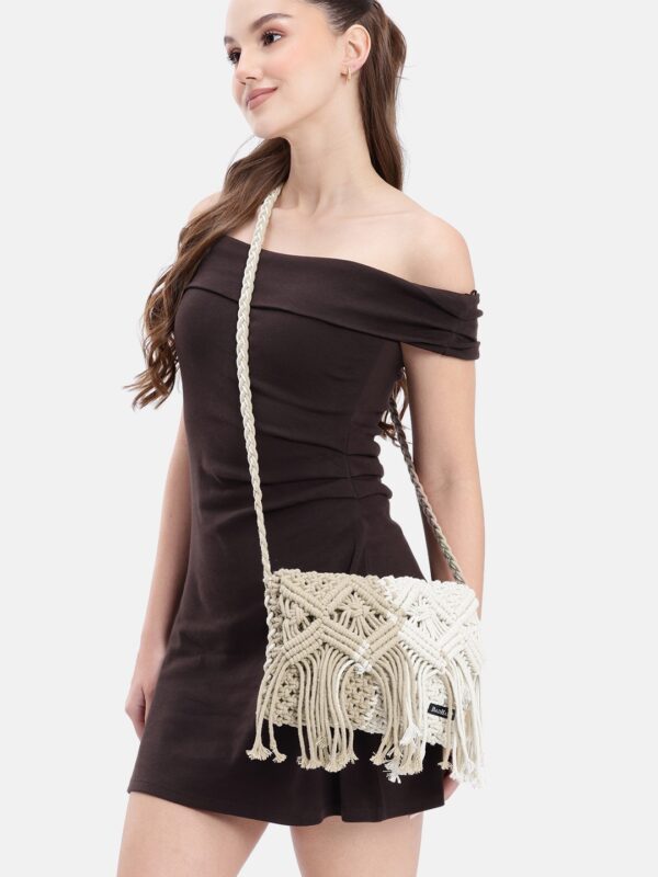 Bad Habit Handmade Organic Boho Macramé Sling Bag for Women – Cotton Rope Crossbody with Fringe & Tassels: Multicolor