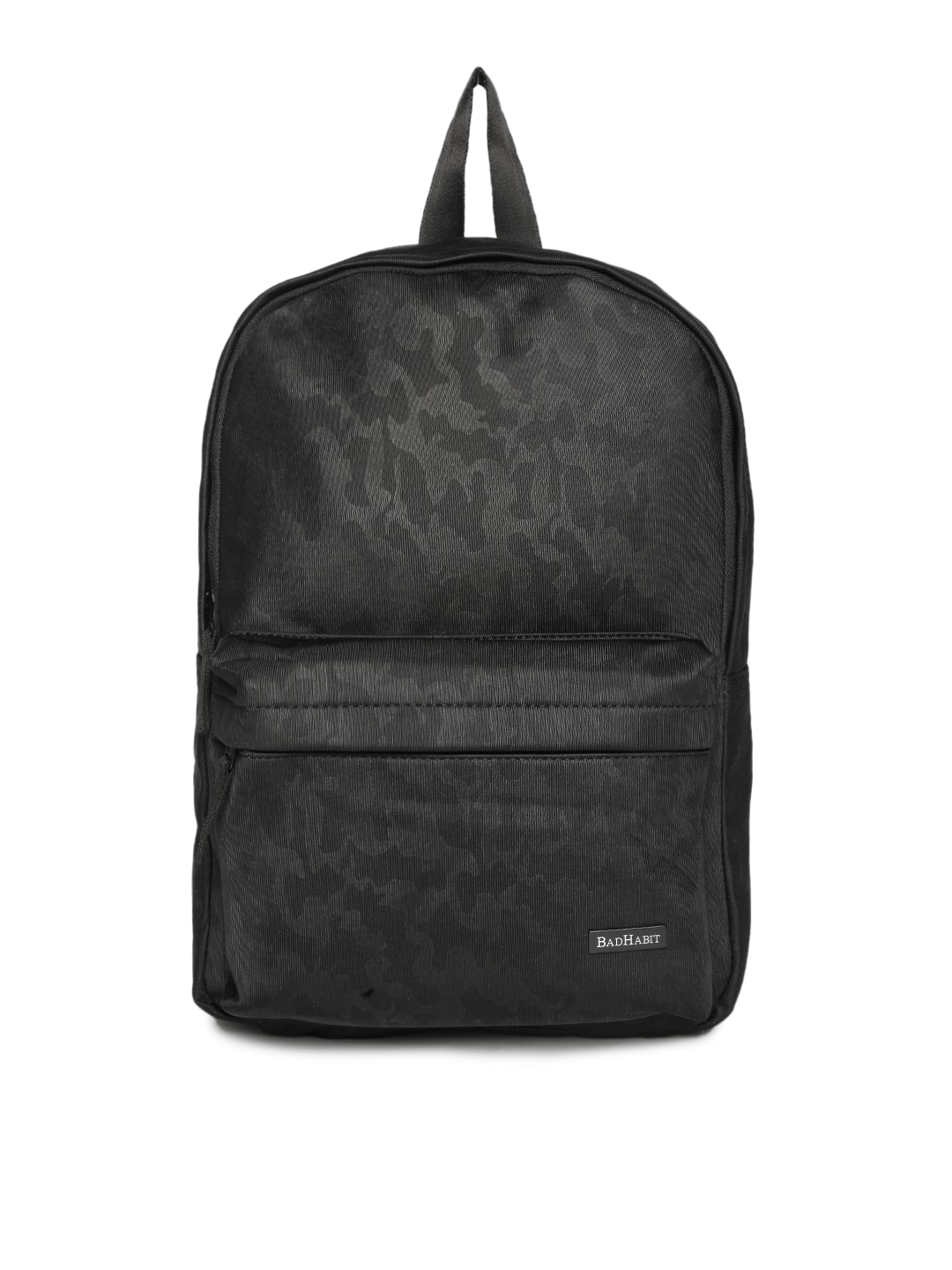 BAD HABIT Unisex Black Camouflage Printed Laptop Backpack, for comfortable storage on the go, this versatile black backpack from bad habit is perfect for work, school, travel, or commuting. this medium-size backpack is equipped with features like zip pocket and a zip closure. 2 main compartment with zip closure padded mesh back zip pocket padded shoulder strap: padded
