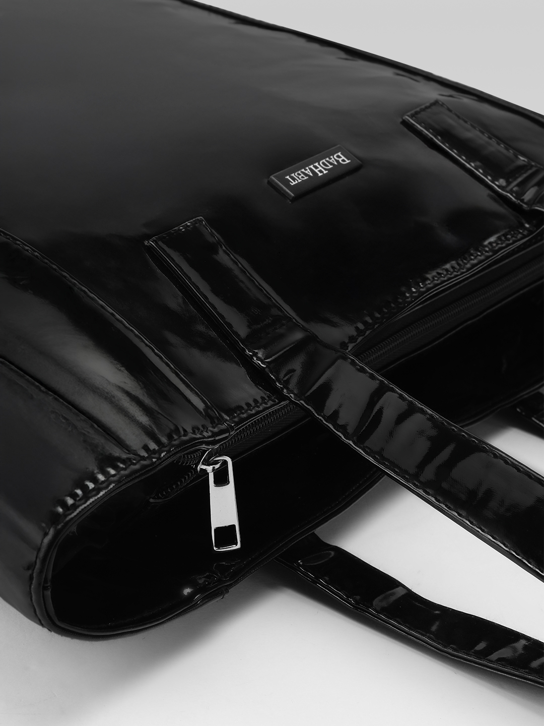 Every woman deserves a handbag that reflects her confidence, individuality, and evolving sense of style — and the Bad Habit Luxe Patent Handbag in Black brings all of that together with a bold, high-fashion shine. Crafted with premium patent (shiny) coated fabric, this handbag is designed to stand out, offering a sleek, glossy finish that elevates every outfit, from everyday casual to evening elegance.