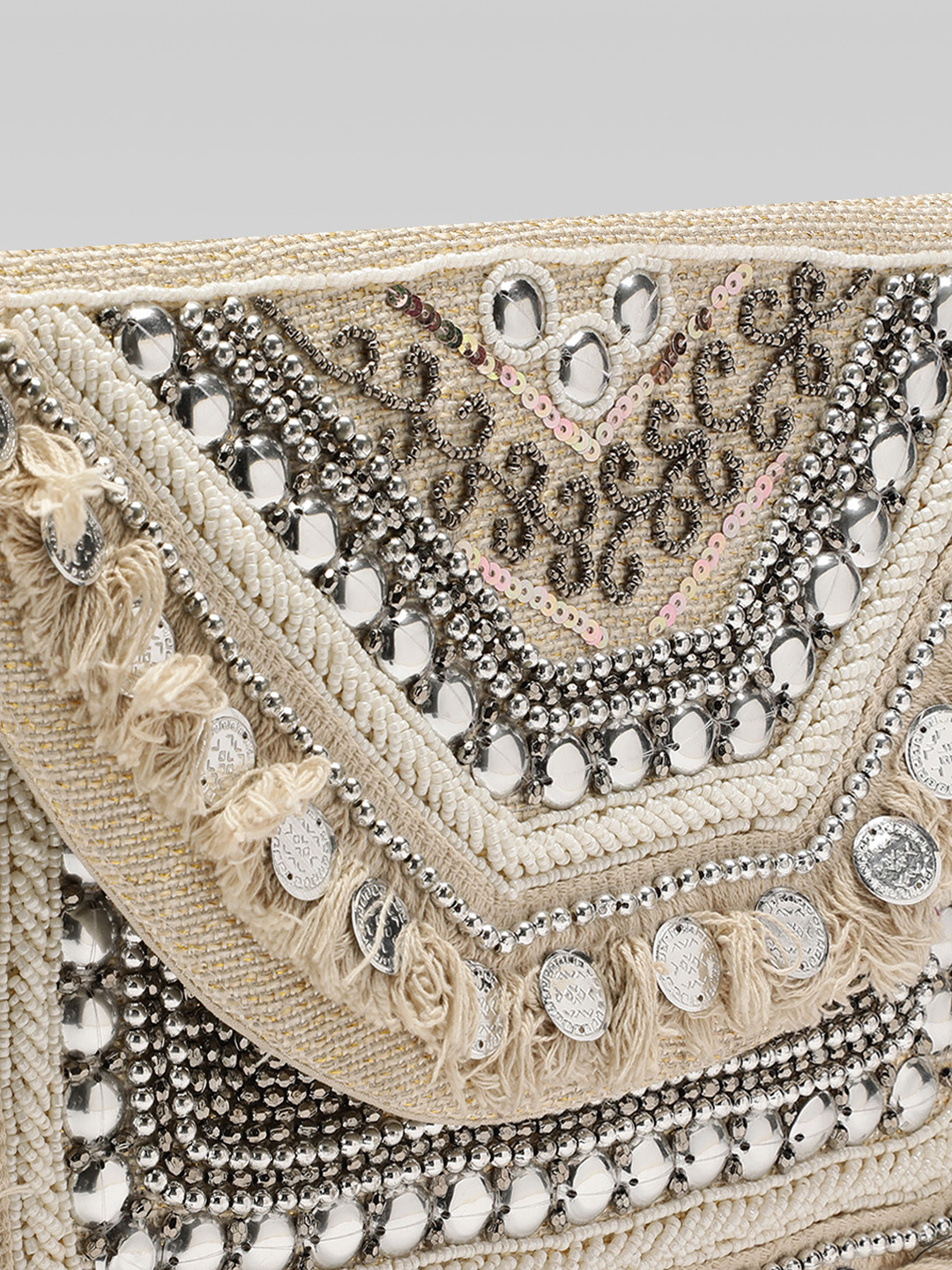 • Boho Tassel & Fringe Details – Adds movement and charm, enhancing the clutch’s ethnic and boho aesthetic.