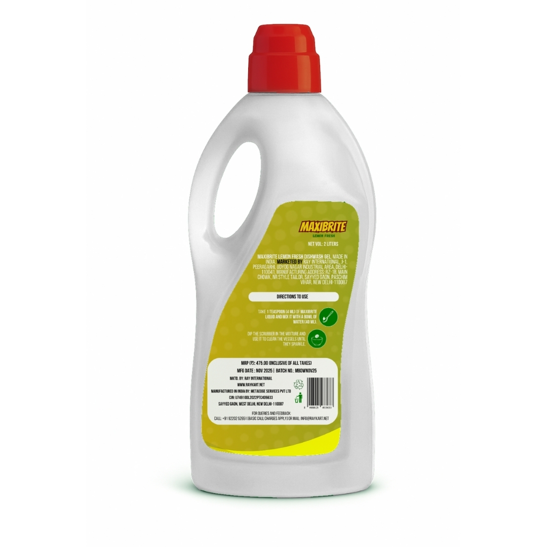Home Home Care Dishwash Liquid MAXIBRITE Manual Dishwashing Liquid High Concentration Formula Dish Cleaning Gel (Lemon Fragrance, 2 L)