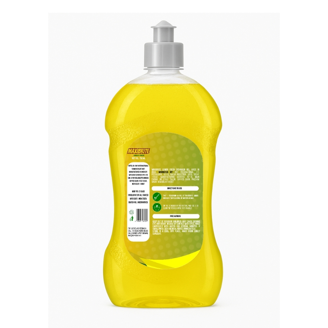 Home Home Care Dishwash Liquid MAXIBRITE Manual Dishwashing Liquid High Concentration Formula Dish Cleaning Gel (Lemon Fragrance, 750 ML)